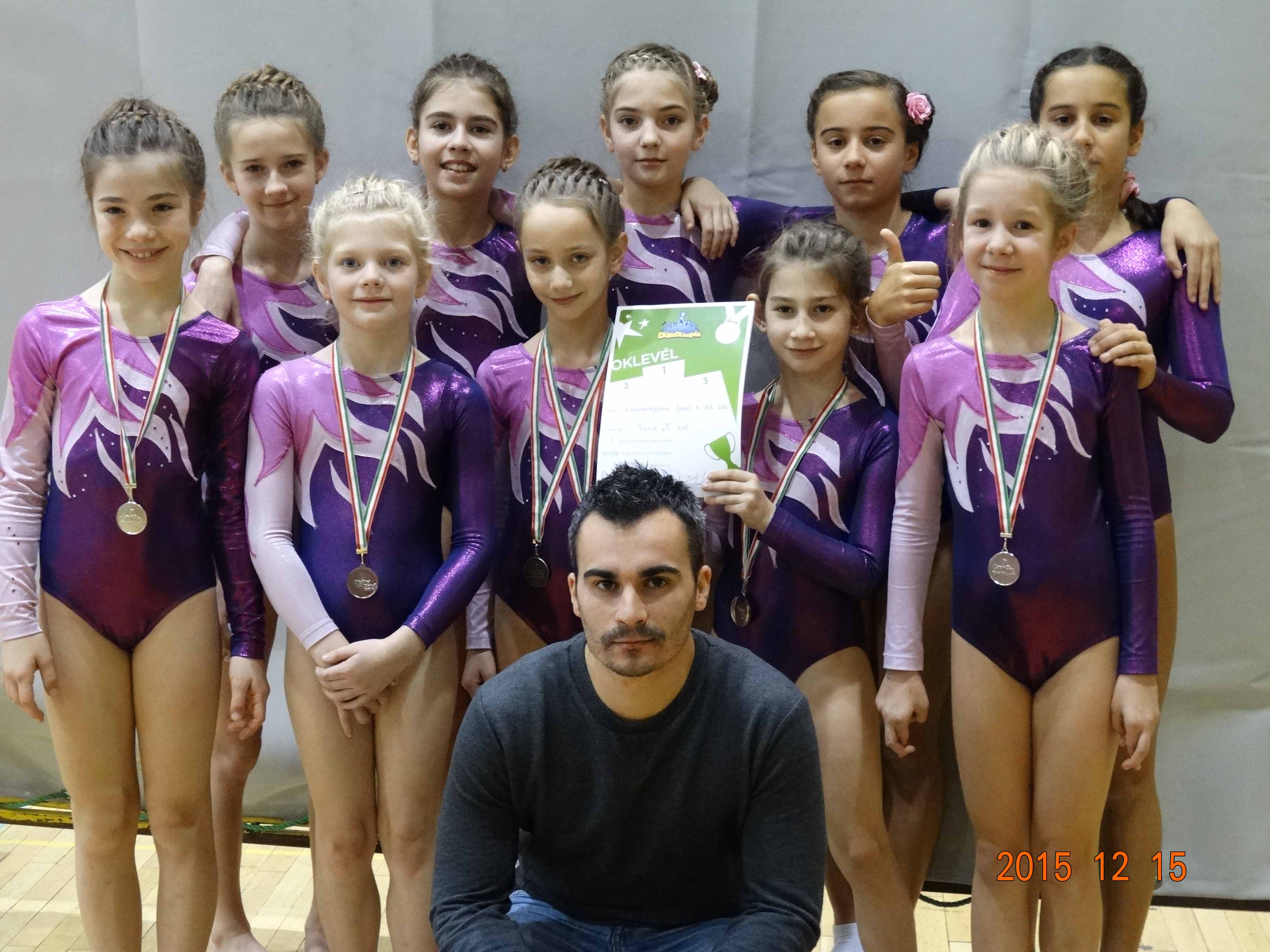 A felső tagozatosok között legfiatalabb csapat, Nagy-Pál Eszter, Retkes Dorka, Siber Glória, Gombás Bora és Siber Szófia ugyancsak a 2. helyen végzett, mellyel kvalifikálták magukat a jövő év márciusában megrendezésre kerülő országos elődőntőbe. Siber Szófia mindhárom szeren kiemelkedő teljesítményt nyújtott, mely egyéni összetettben az előkelő 4. helyre volt elegendő a nagyon erős és nála idősebb mezőnyben.