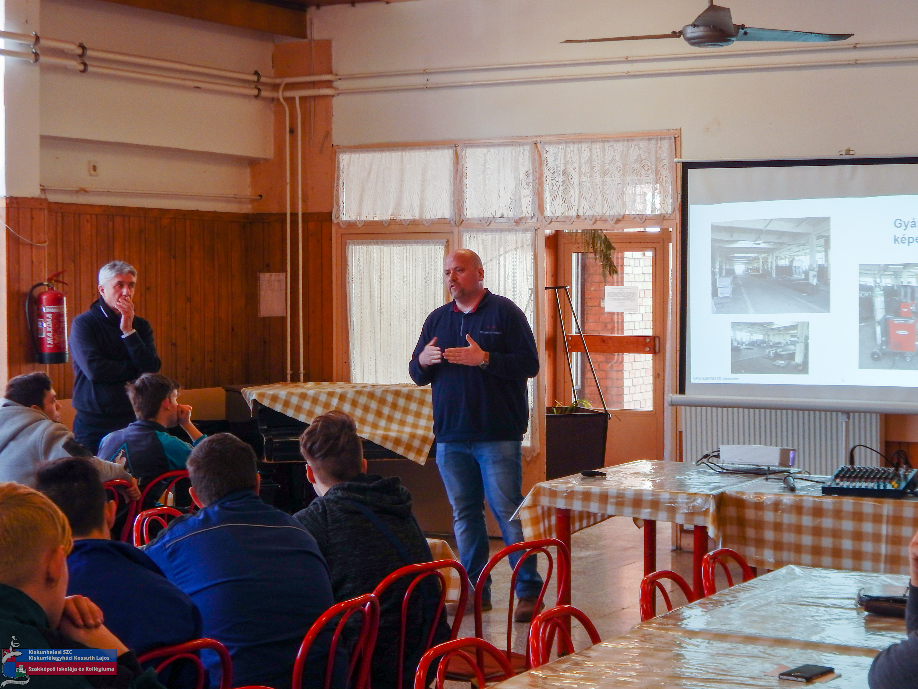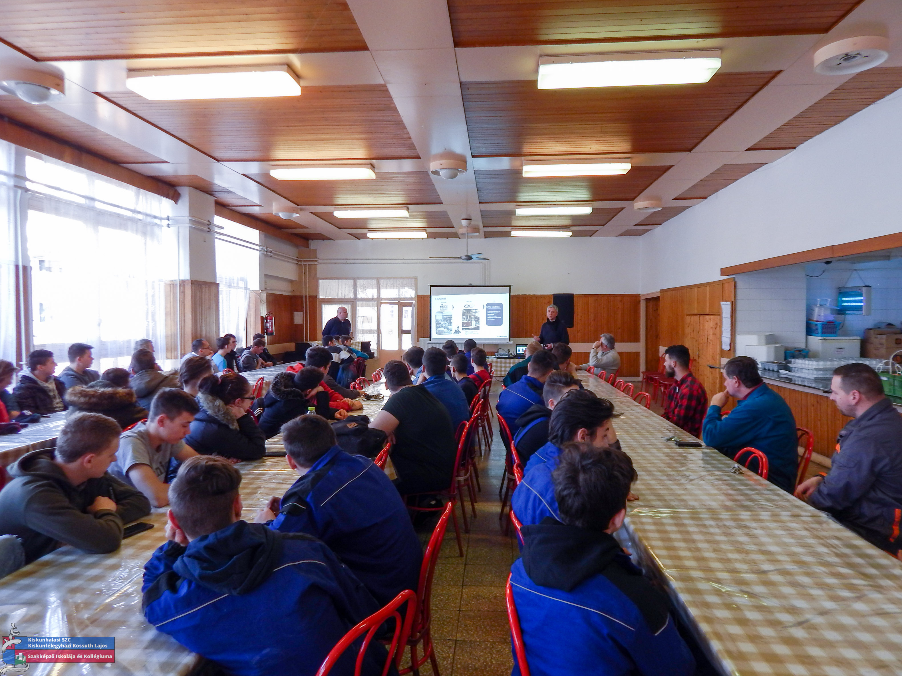 2019. február 27-én a Kiskunhalasi Szakképzési Centrum Kiskunfélegyházi Kossuth Lajos Szakképző Iskolájába és Kollégiumába ellátogatott a szentesi a GANZ-SZENTES Acélszerkezet Kft. képviseletében Sámson Gábor ügyvezető igazgató hegesztő mérnök kollégájával együtt, hogy bemutassa az iskola hegesztő diákjainak cégüket. Színvonalas előadásukkal a közel 60 tanuló érdeklődését kívánták felkelteni abból a célból, hogy tanulmányaik befejeztével munkát tudnának biztosítani számukra.
