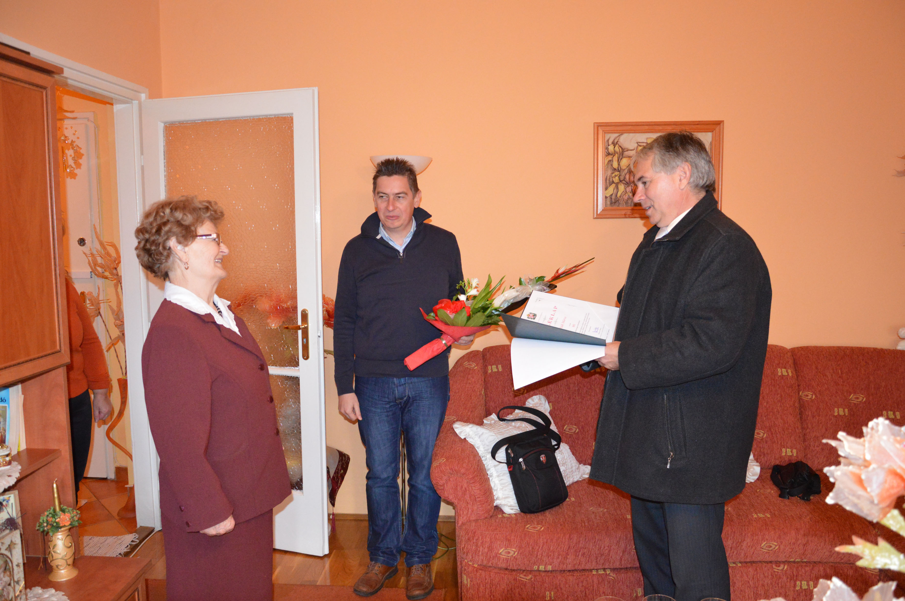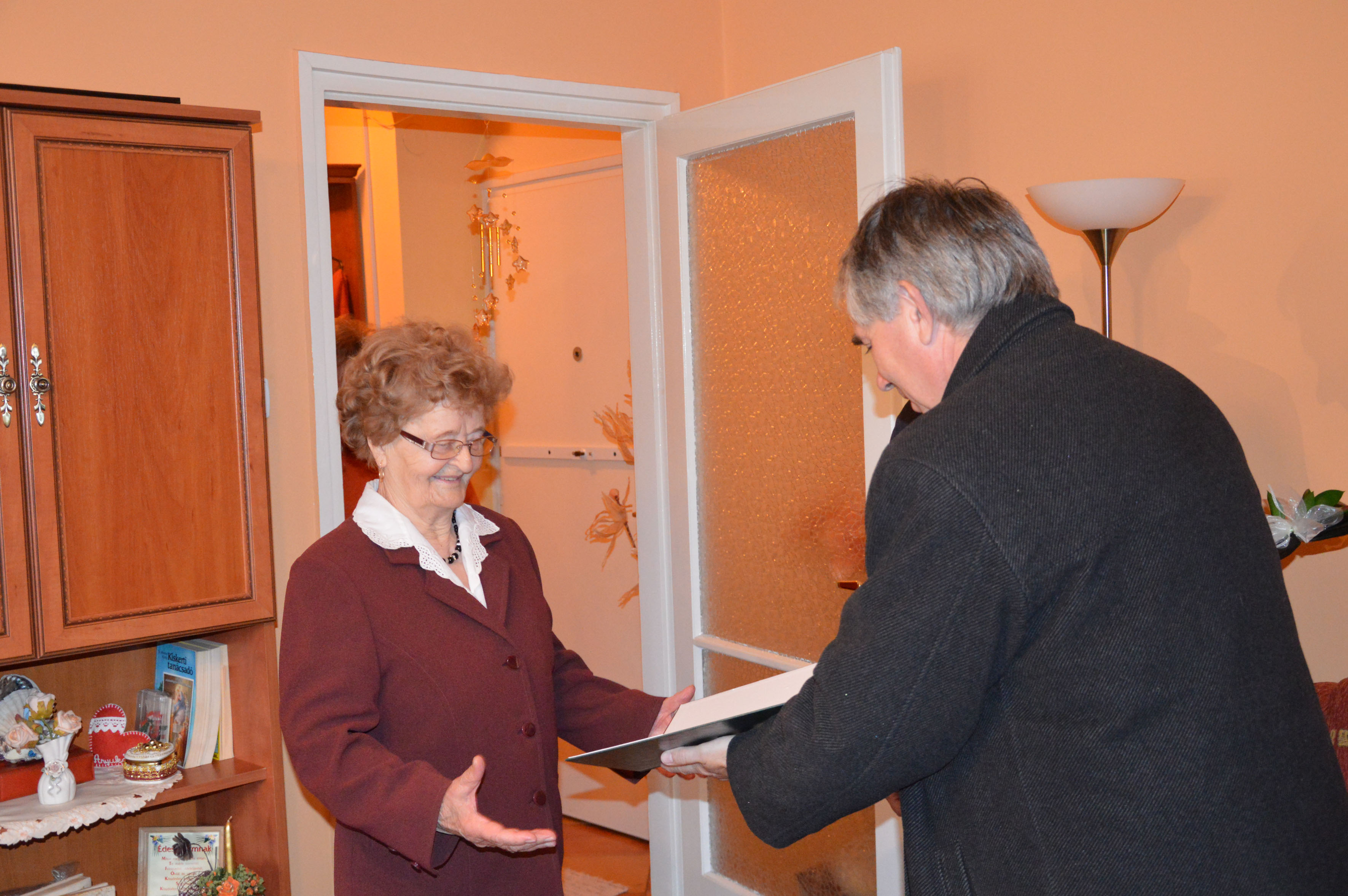 Rádi Mária szül. Samu Mária 90. születésnapját tölti a héten. Ez alkalomból Balla László alpolgármester és Gyenes Attila a körzet önkormányzati képviselője köszöntötte őt otthonában.