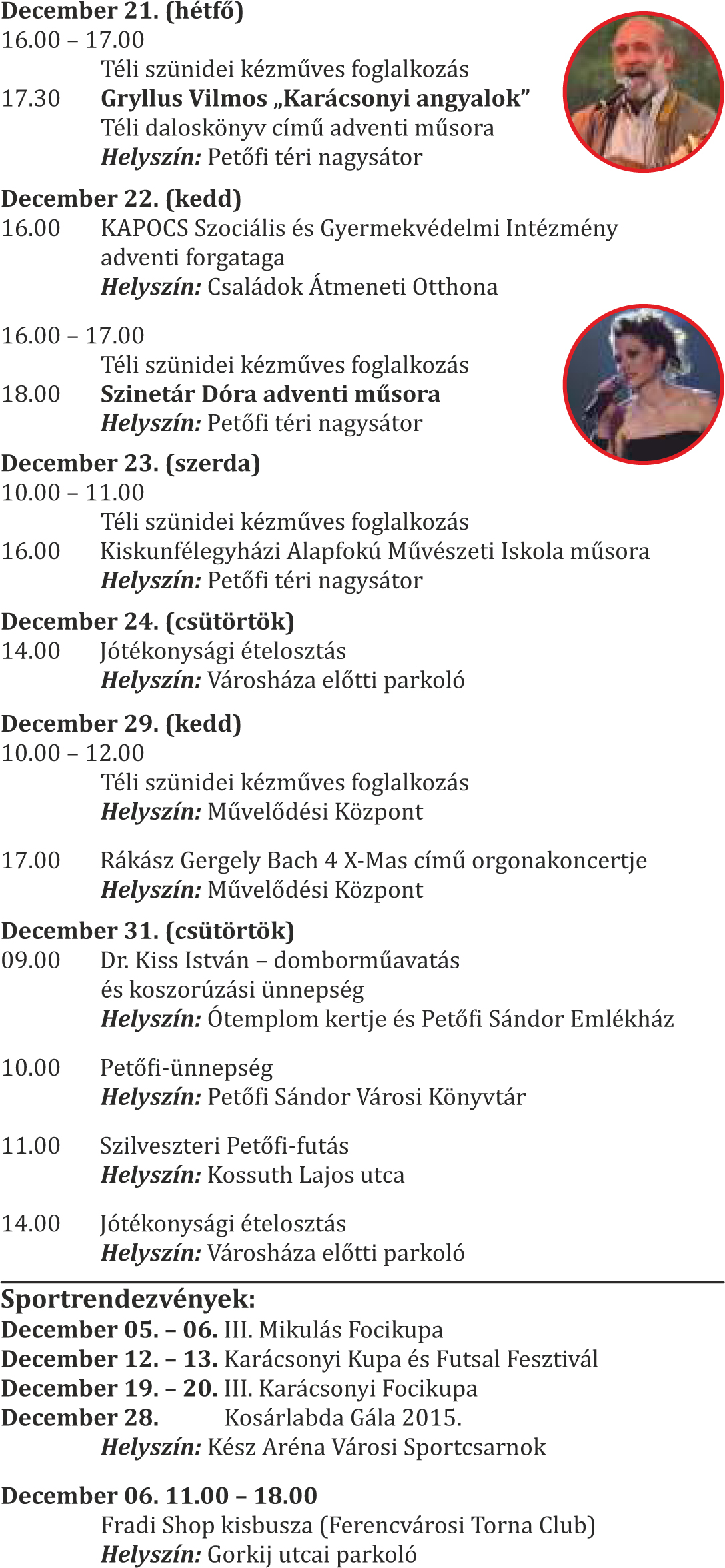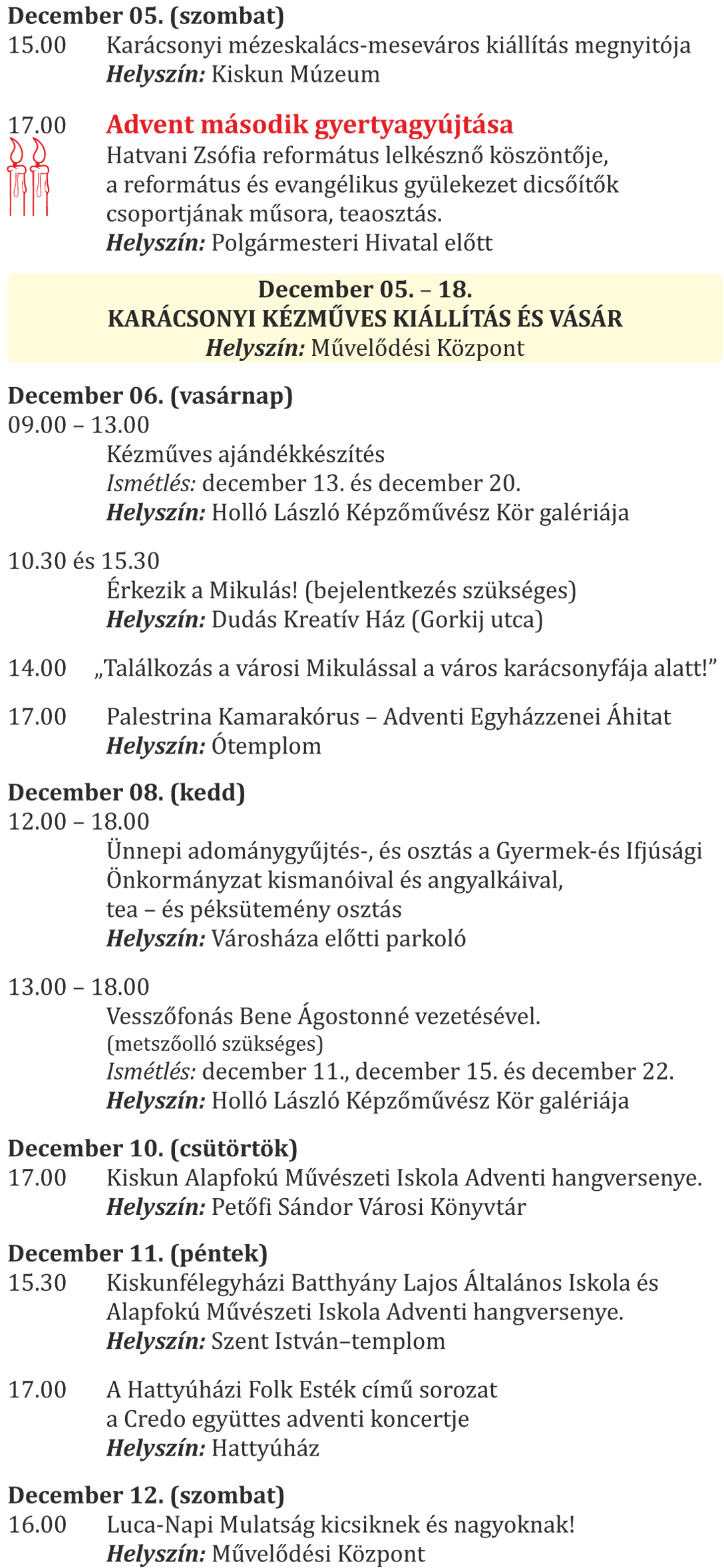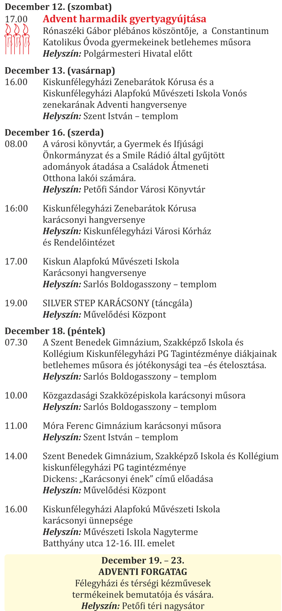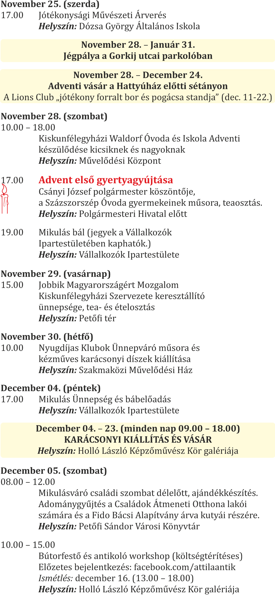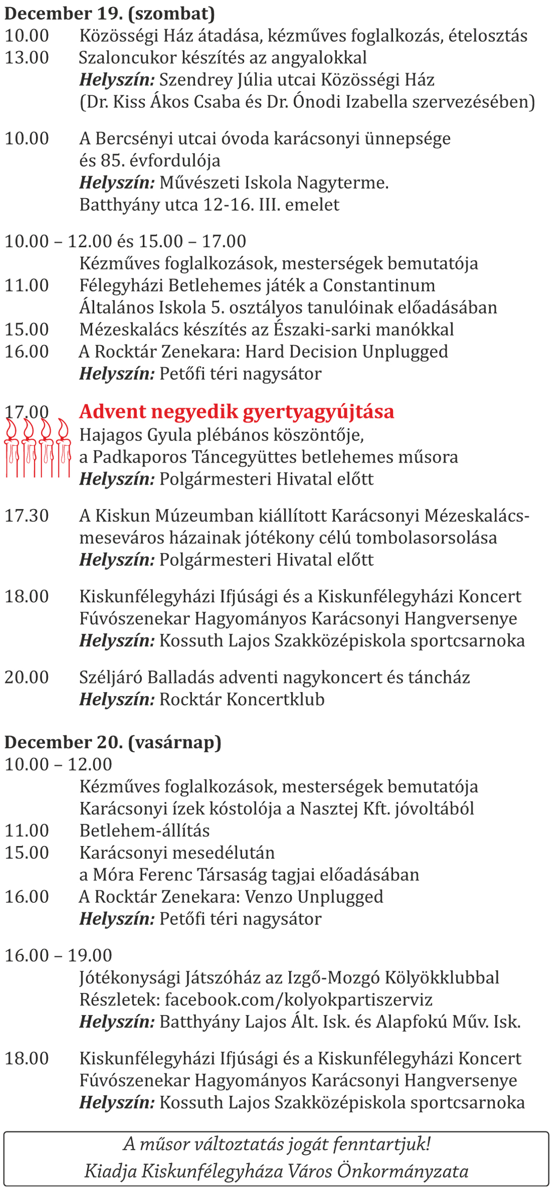 Adventi programok Kiskunfélegyházán