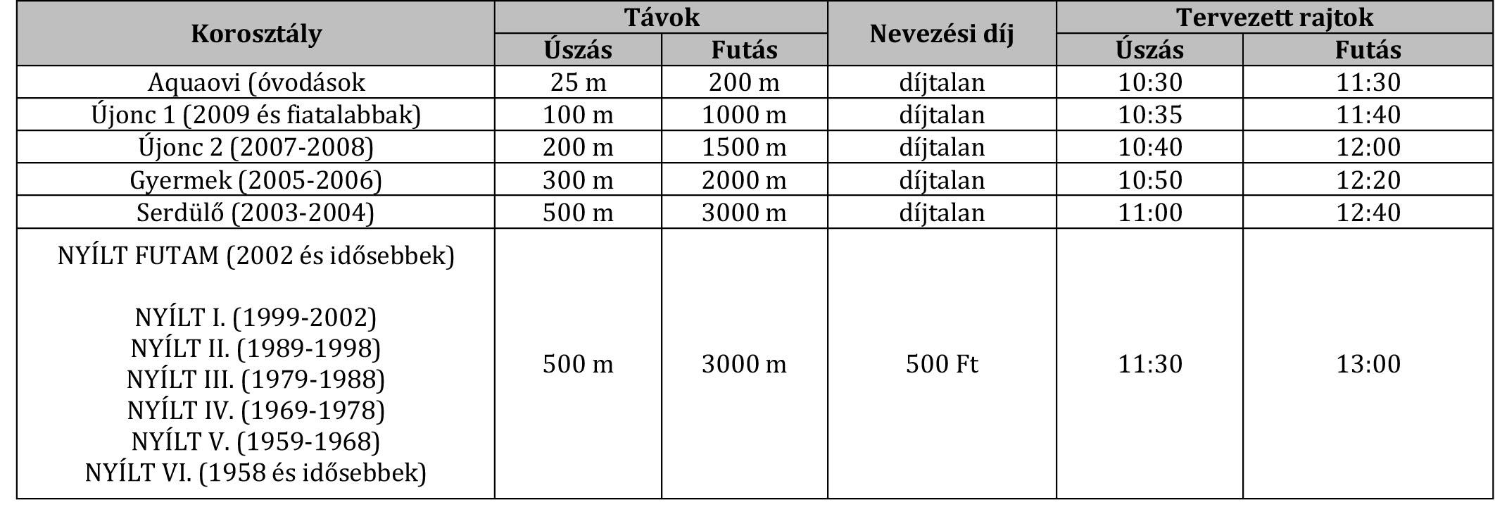 Nevezési díj CSAK NYÍLT FUTAM ESETÉN: 500 Ft/fő.