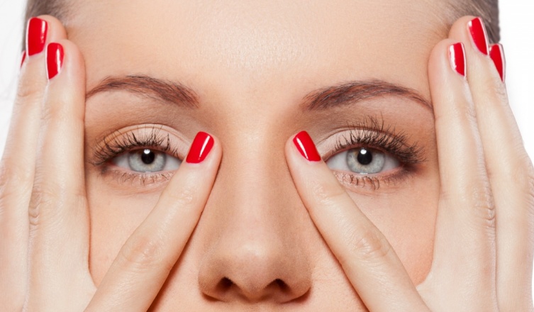 Finoman nyomd be egy kicsit a bőrödet, majd kezdd el a kezeidet kifelé, a halántékod felé húzni. Ismételd meg a gyakorlatot nyolcszor, minden alkalom között néhány másodperc szünetet tartva.
