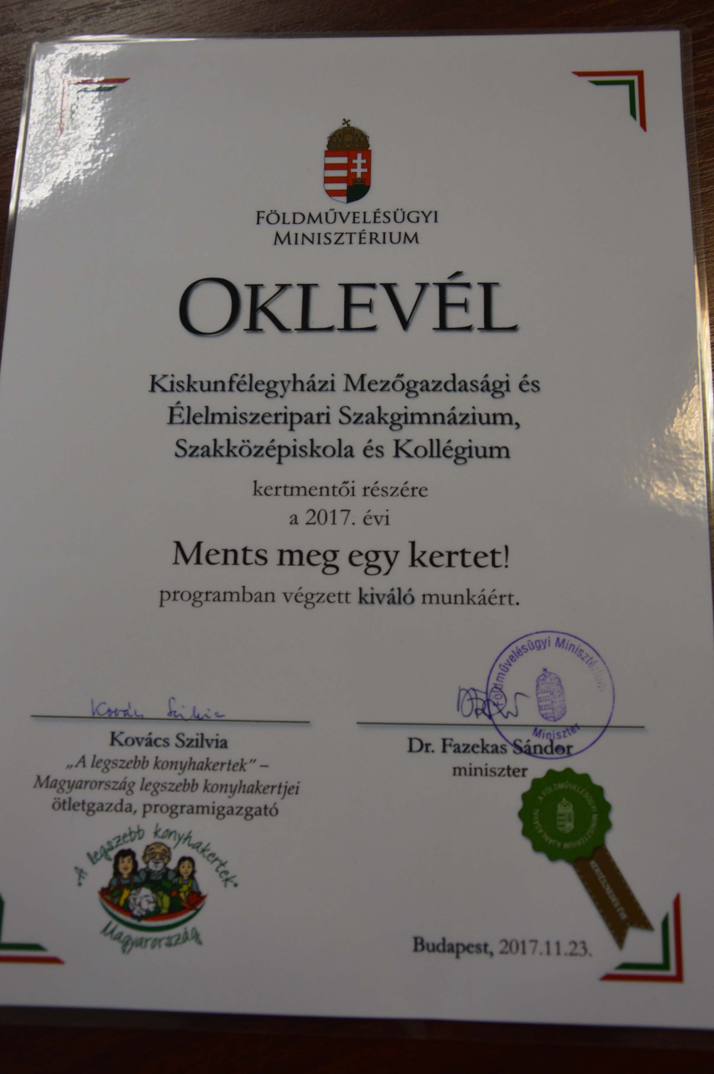 A megszépített kertről a diákoknak rendszeresen fotókat kell eljuttatni a minisztériumba, ahol aztán az elkészült képek alapján, illetve a terület nagyságától függően díjazták a pályázatban résztvevő tanulókat és iskolájukat – mondta el lapunknak Rózsa Pál, az iskola igazgatója. Büszkén árulta el azt is, hogy tanítványainak munkáját a Földművelésügyi Minisztérium „Kiváló munkáért” oklevél átnyújtásával ismerte el.