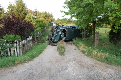 Az elrabolt személyautó vezetője a főút 103.600-as méterszelvényénél eddig tisztázatlan okból letért az útról és egy családi ház udvarán keresztülhajtva egy dűlőúton felborulva állt meg. A balesetet szenvedett 31 éves kiskunfélegyházi sofőr - az elsődleges adatok szerint az égési sérülések következtében - a helyszín közelében életét vesztette.