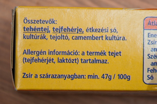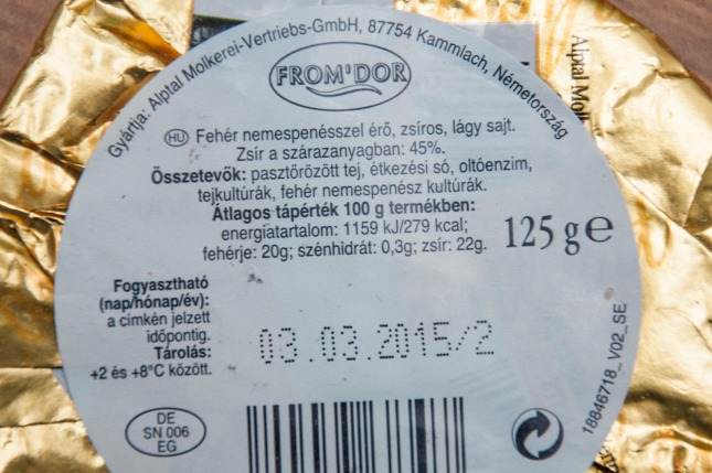 Azt vártuk, hogy ez is a csehek terméke lesz, de nem: minden jel szerint itthon készül, és egész jó is. Mivel zsírtartalma magas, ezért kellemesen krémes, igaz, jót tenne neki az idő – ezek a típusú camembert-ek a legjobbak arra, hogy a csehek jolly joker kocsmai ételét, a „nakladany hermelint” elkészítsük. Na, vajon mi a tervünk a maradékkal?