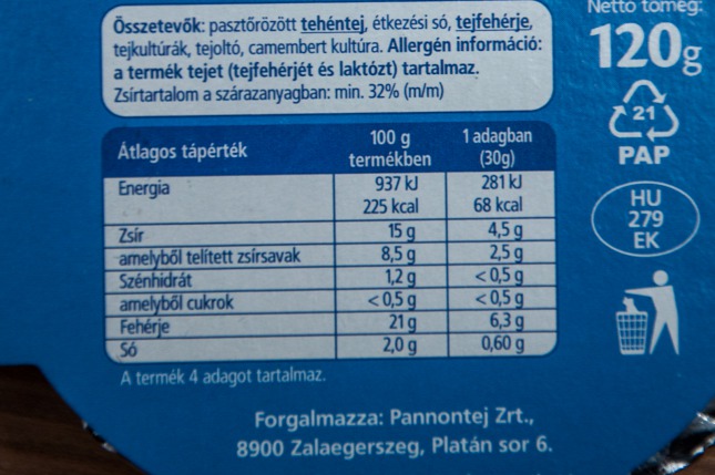 Egyetlen hibája van, hogy az íze nem képes feldobni a kóstolókat. Egyszerű, neutrális, nincs benne az a rafinéria, amiért egy jó camembert-re képes vagyunk éjszaka is rájárni. Kétszer. Meg reggel is kicsit.