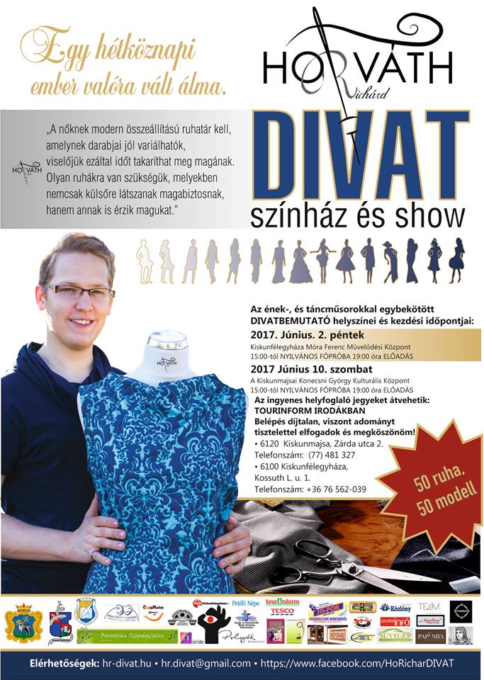 Sok szeretettel várnak mindenkit 2017. június 2-án az ének- és táncműsorokkal egybekötött divatbemutatóra a Móra Ferenc Művelődési Központba. Nyilvános főpróba 15 órától, az előadás 19 órától lesz megtekinthető.