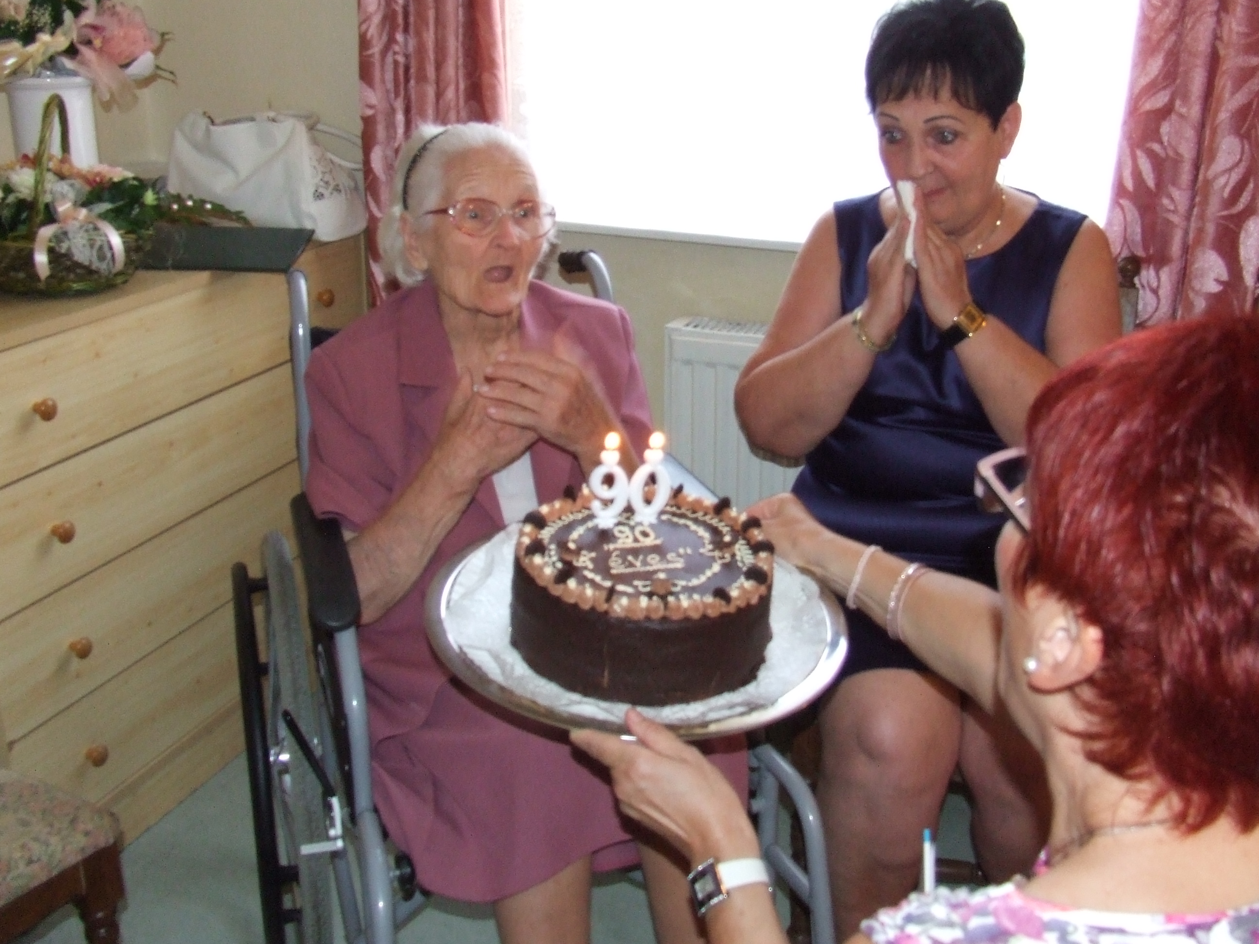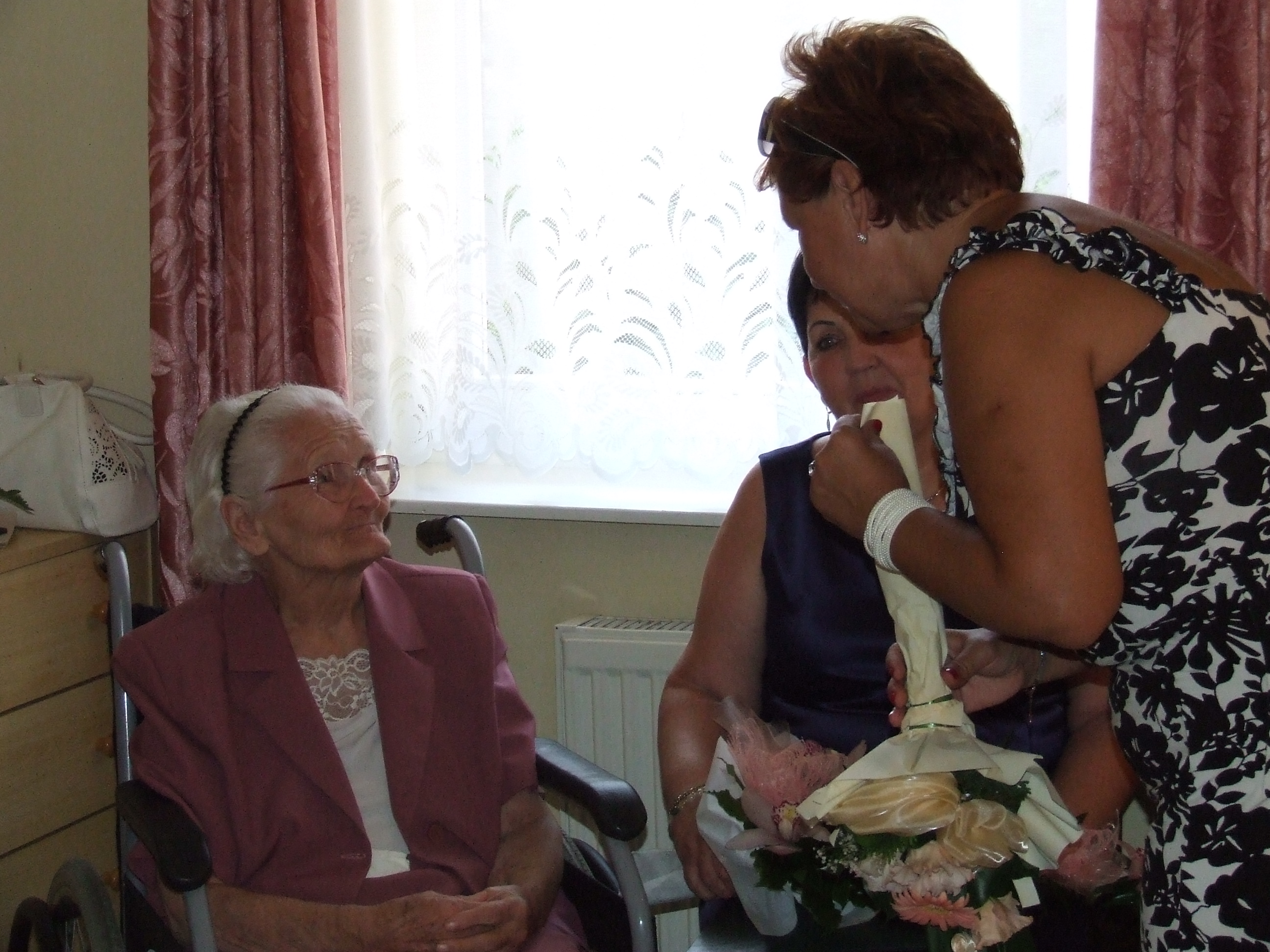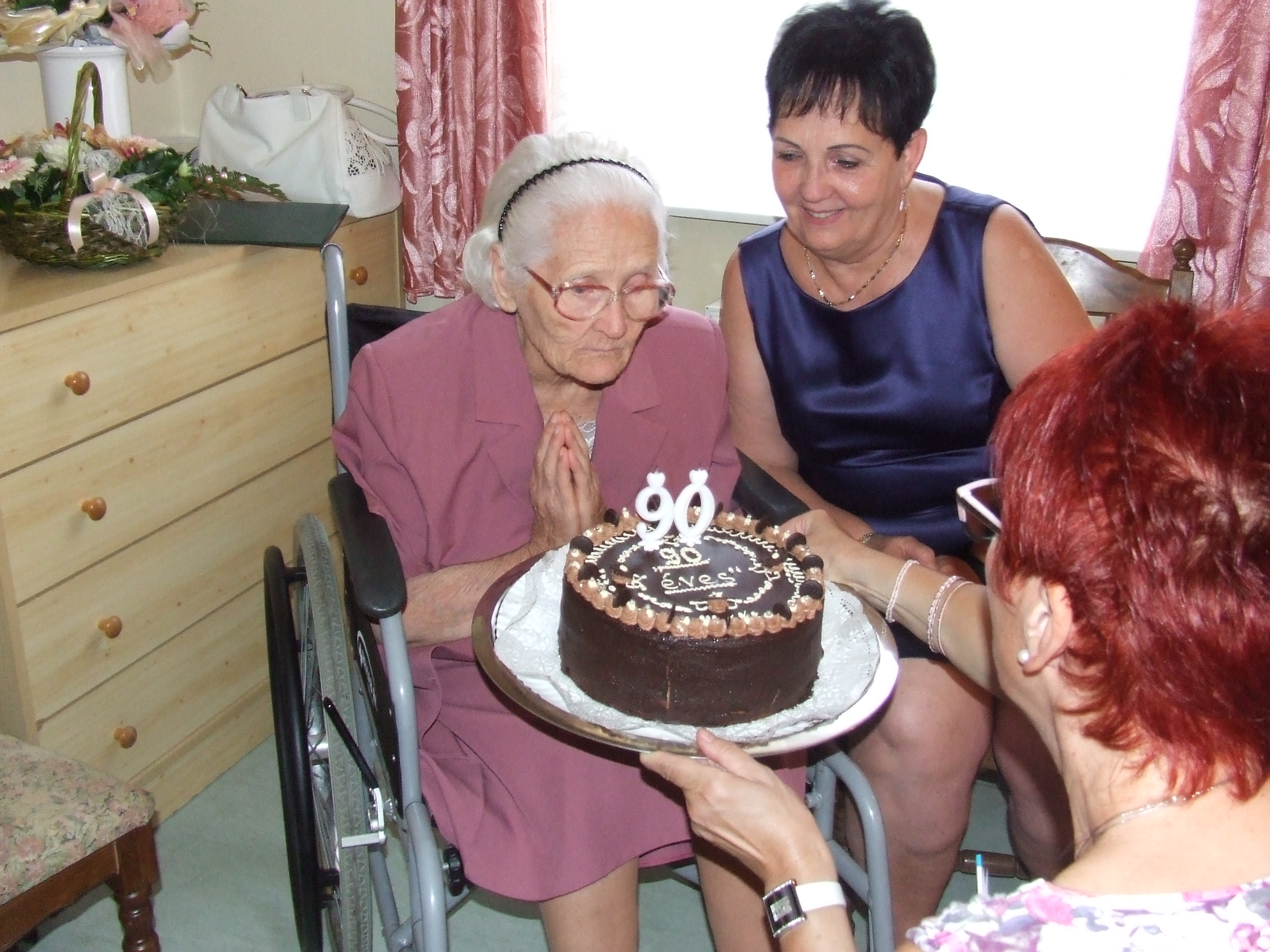 Marika nénit nagyon szeretik az otthonban, mutatja ezt, hogy szobatársa egy kedves énekkel, a gondozók és az otthon vezetője virággal, verssel és énekkel köszöntötték a szépkorú asszonyt. A család pedig 90 szál fehér rózsából álló csokorral, tortával lepte meg az idős nénit.