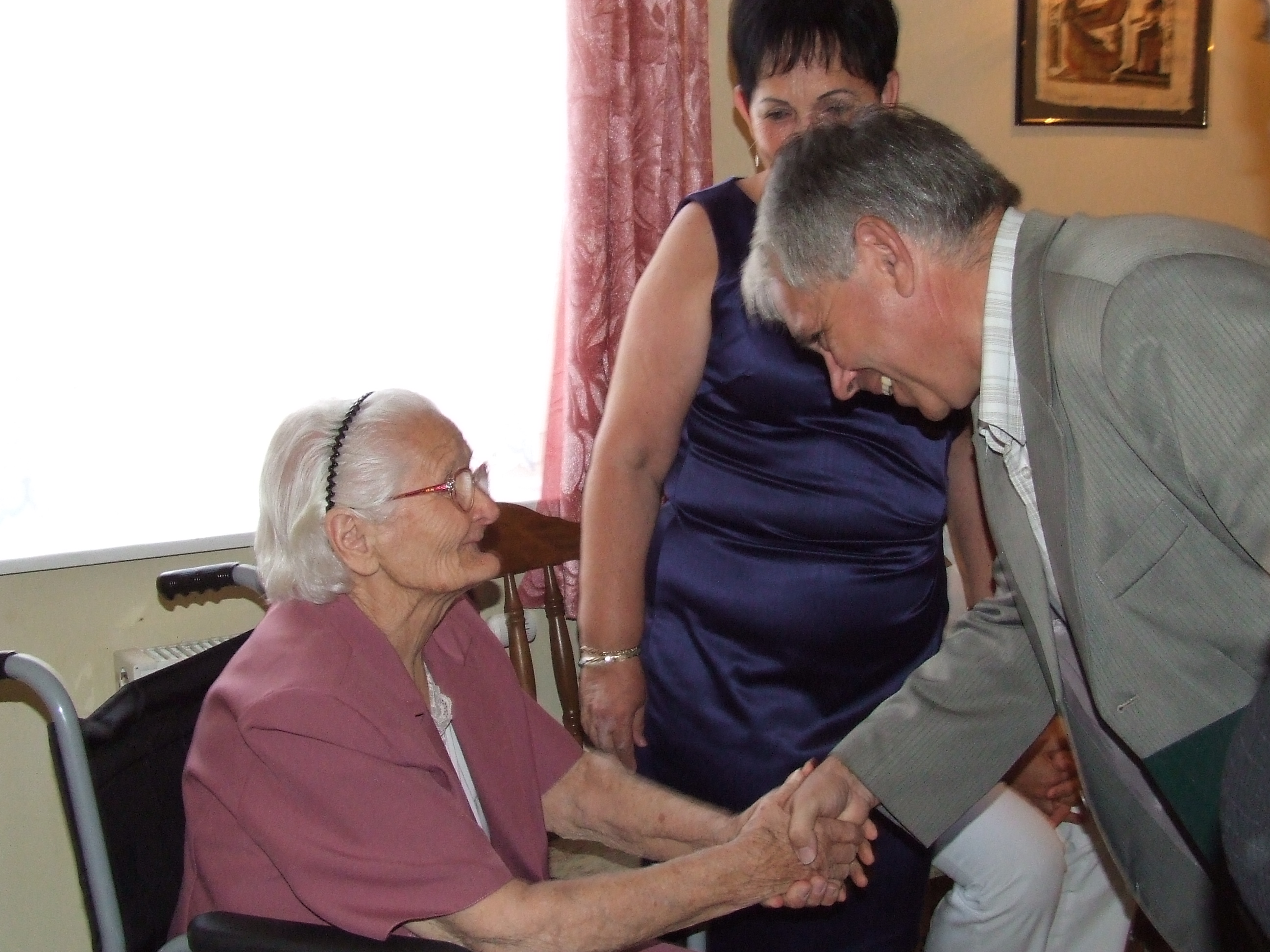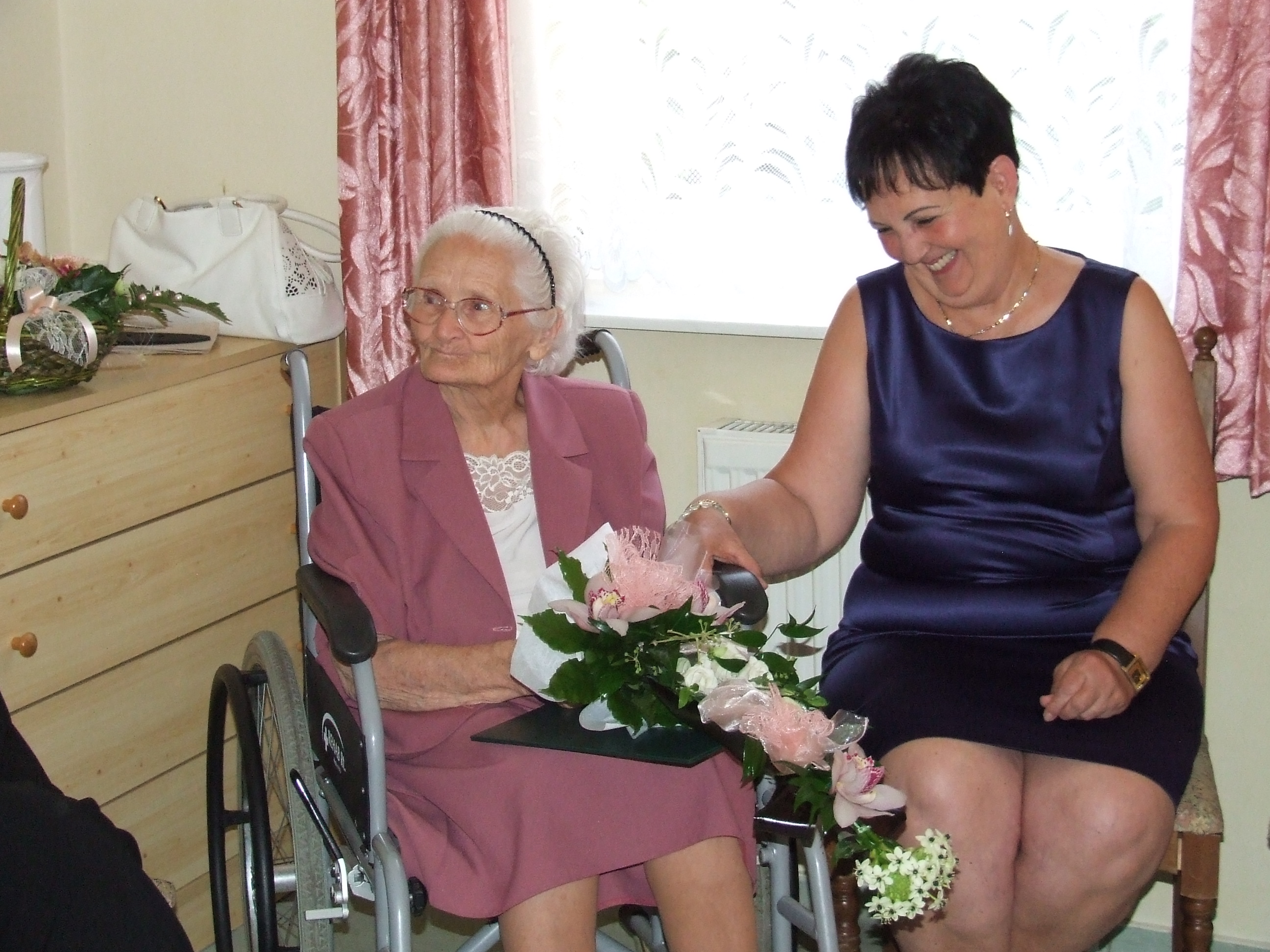 Horváth Sándorné Karsai Máriát 90. születésnapján köszöntötte ma (szeptember 1-jén) Balla László alpolgármester, Csanyi úti Szociális Otthon vezetője, munkatársai és a család.
