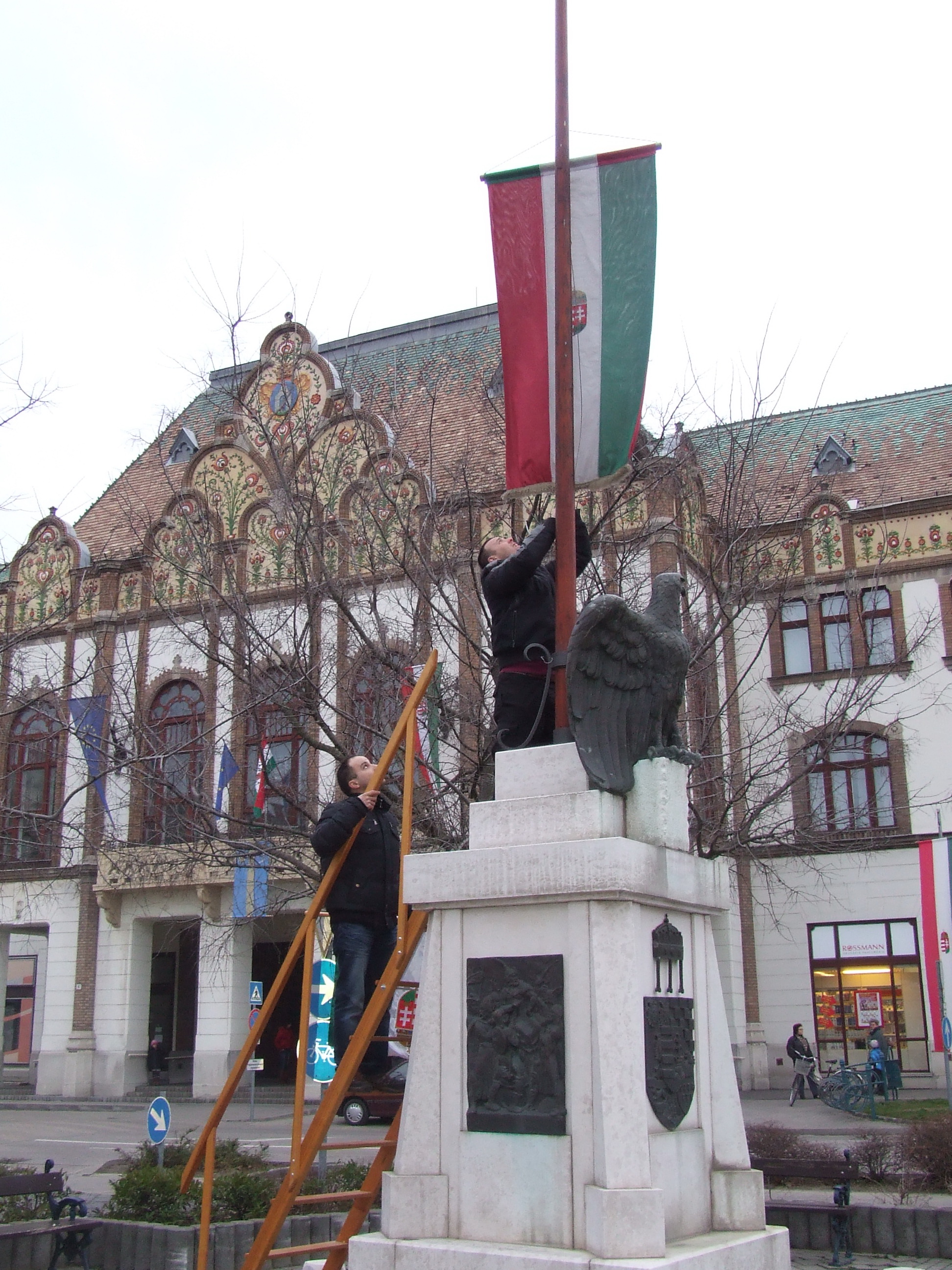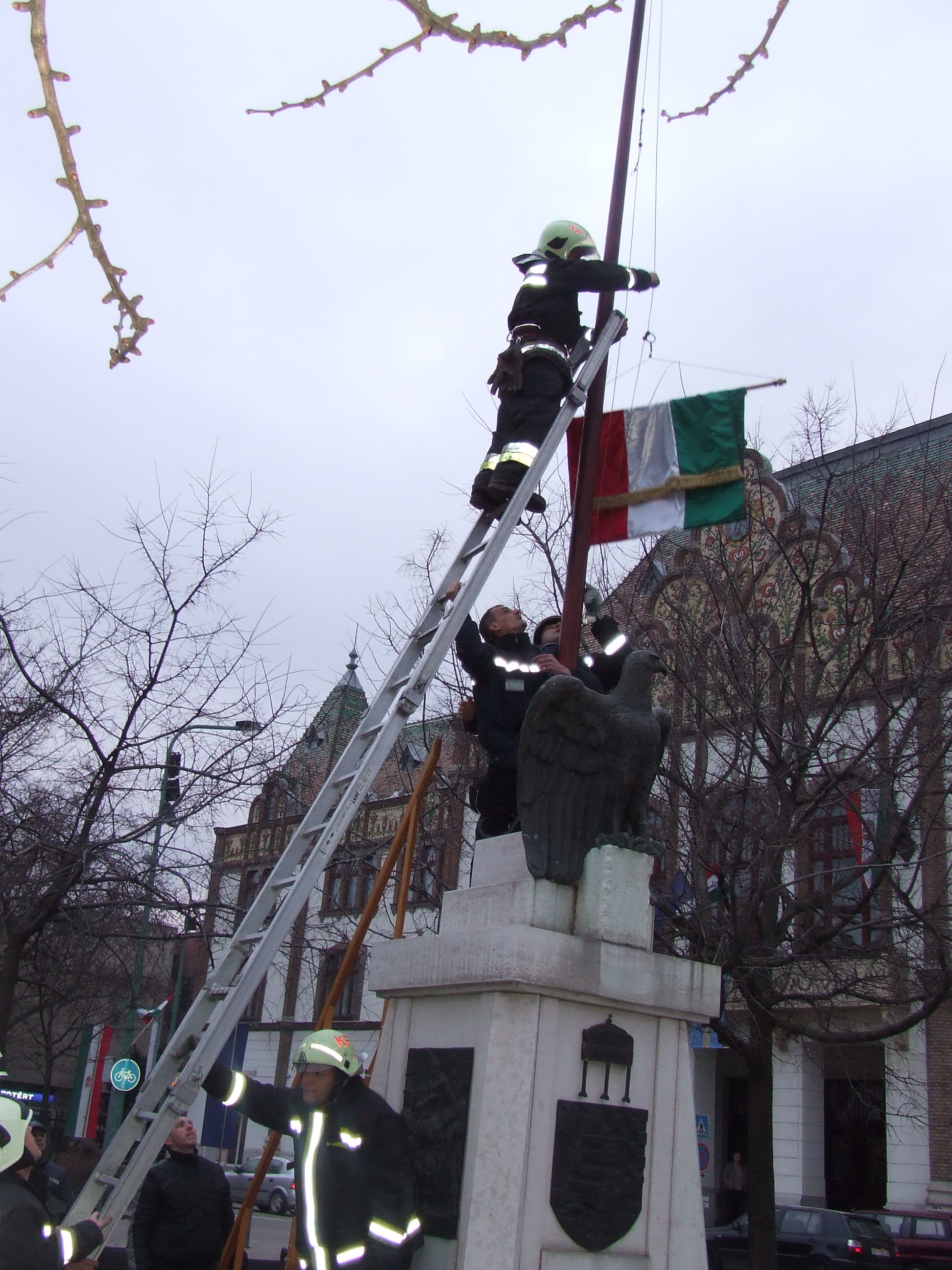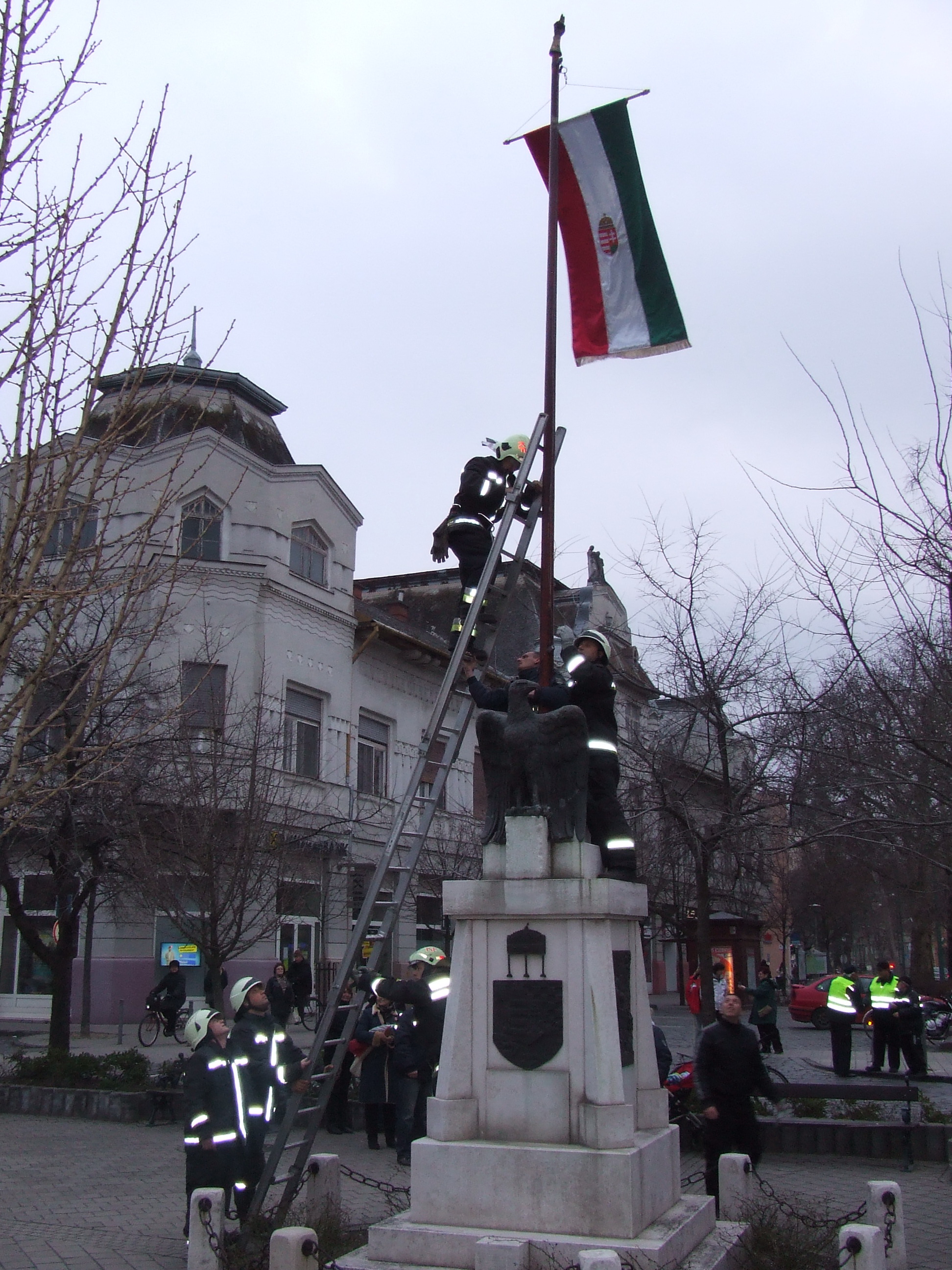 Idén a Tűzoltóságot is be kellett vonni a feladatba, mert a zászló felvonó zsinórja az utóbbi idők szeles időjárásának következtében annyira összegabalyodott, hogy nem lehetett sem le, sem felhúzni a zászlót. A segítségkérést követően pár perc múlva kivonultak a tűzoltók és pillanatok alatt megoldották a problémát.