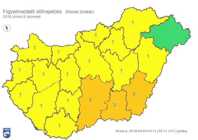 Ezek környezetében viharos, károkozó széllökés és nagy méretű jég is – 2, 3 cm-t meghaladó átmérővel – előfordulhat. Helyenként felhőszakadás is valószínű – közölte az Országos Meteorológiai Szolgálat.