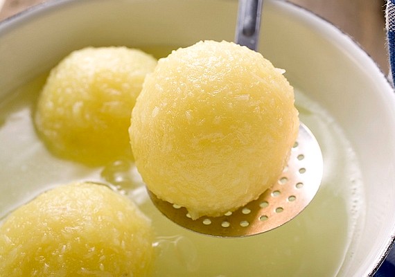 Némiképp bonyolultabb a fentieknél a gombócfőző jóslás, viszont az előző kettőnél gyorsabban fedi fel a leendő férj kilétét. Ekkor is 12 papírdarabra írtak 12 férfinevet, melyeket egy-egy gombócba rejtettek, egy 13. gombócot pedig üresen hagytak. Aztán egyesével forró vízbe tették őket, és, amelyik elsőnek feljött, az rejtette a nevét annak a férfinak, aki - elméletileg - egy éven belül oltár elé vezette őket. Ha az üres gombóc bukkant fel elsőként, az azt jelentette, hogy a következő egy éven belül sajnos nem volt várható esküvő.