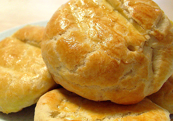 A fenti művelet elvégezhető pogácsával is - rejts 12 papírkát 12 pogácsába, egy utolsót hagyj üresen, majd süsd ki őket. A szabály ugyanaz, mint a gombócos jóslásnál.