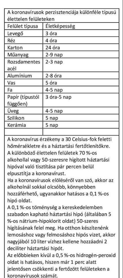 Az új típusú koronavírus a levegőben néhány órán át, egyes felületeken akár két-három napig is megél