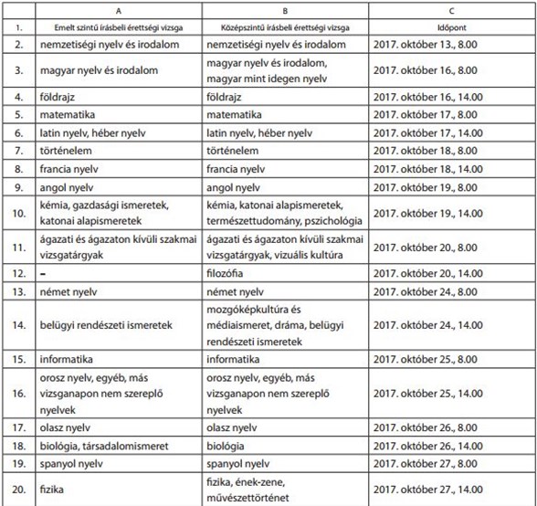 Az őszi írásbeli érettségi 2017. október 13-án kezdődik, és október 27-ig tart, a vizsgaidőpontokat itt találjátok: