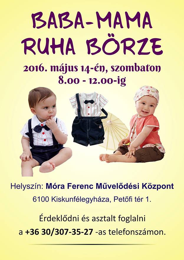 Ma (2016. május 14-én) 8-12 óráig ismét lesz Bababörze a Művelődési Központban!