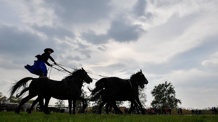 A hagyományokhoz híven szombaton a kilenclyukú hídon áthajtották a jószágokat, átvonultak a csergető csikósok, a híres pusztaötös, miközben a híd lábánál legelészett az impozáns szürkemarha gulya.