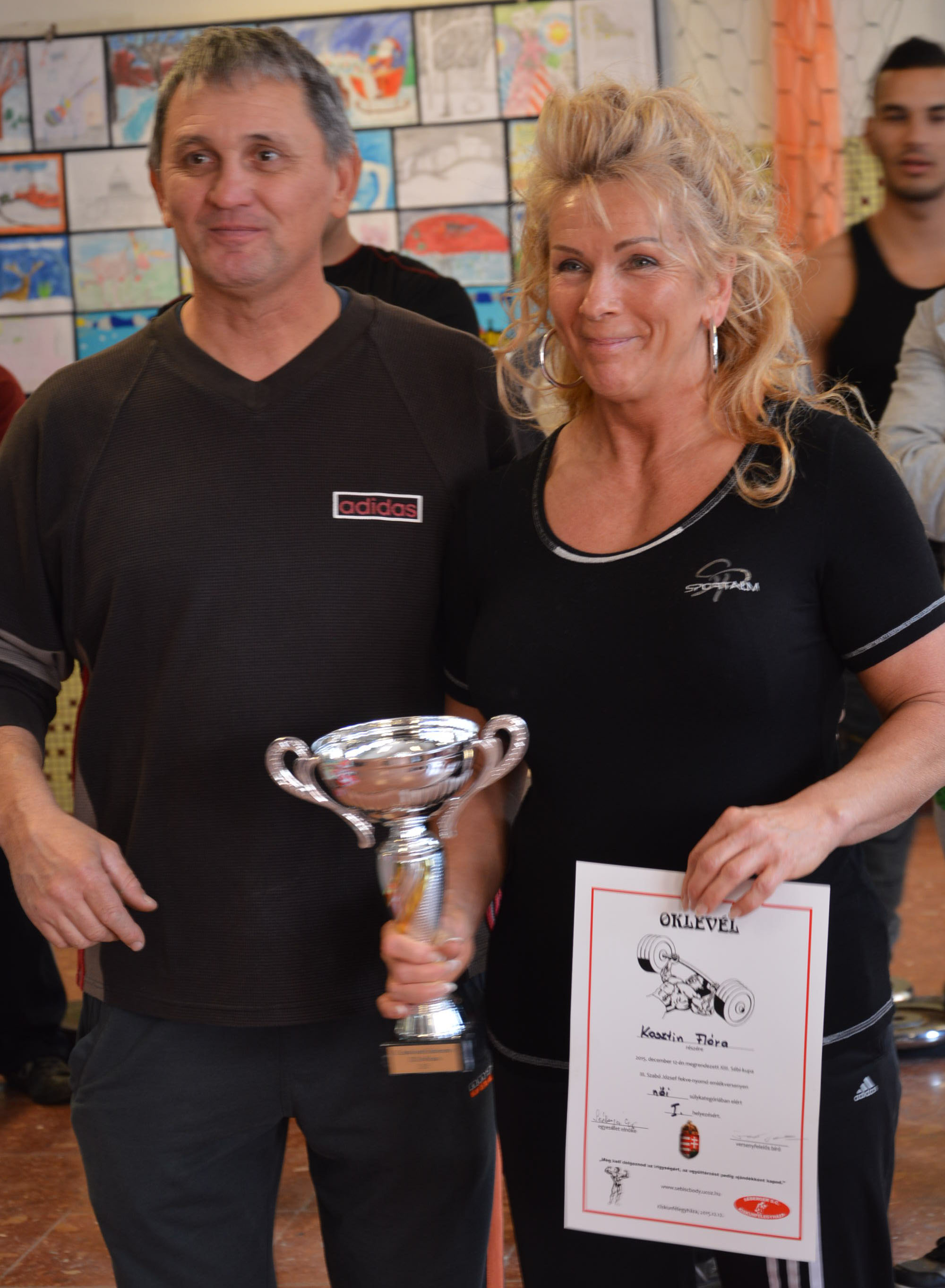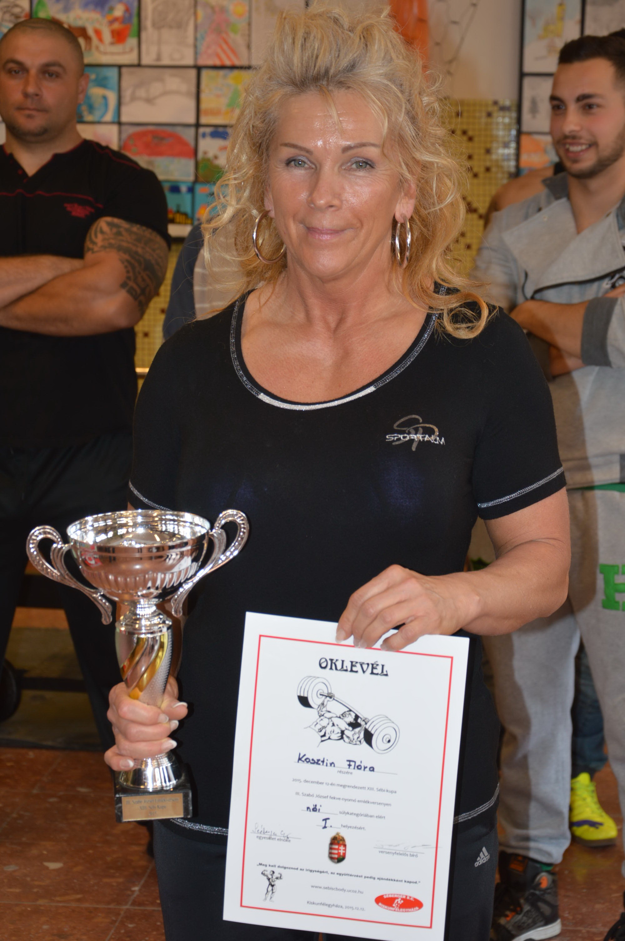 Flóra nem szégyelli a korát, kérdezés nélkül vallotta be 60 évét mosolyogva. A csinos sportolónő a közelmúltban megrendezett Prohászka Zsolt Városi Tornacsarnokban a Fekvenyomó és Erőemelő Magyar Bajnokságon Kosztin Flóra női 67,5 kg súlycsoportban: RAW fekvenyomásban 105 kg-mal aranyéremmel, ruhás fekvenyomásban 120 kg-mal aranyéremmel, ruhás erőemelésben 400 kg-mal aranyéremmel térhetett haza. Mindhárom eredménye új országos csúcs, és mindhárom versenyszámban megszerezte az abszolút első helyezést is. Ezek az eredmények nemcsak azt igazolják, hogy városunkban nem akadhatott ellenfele a hétvégi versenyen, hanem azt is, hogy a széles nagyvilágban sem, hiszen fekvenyomásban 125 kg-mal Flóra világcsúcs tartó (GPC Világkupa).