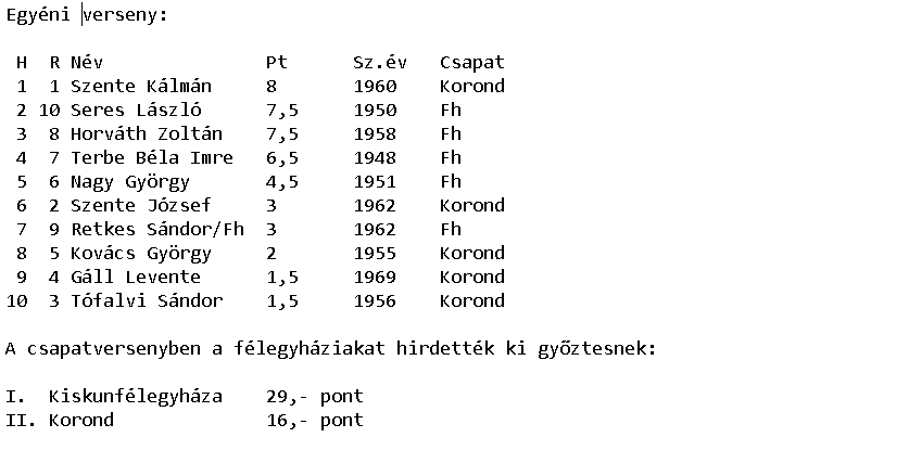 született, a vendégek dobogós helyen végeztek, részletes eredmények: