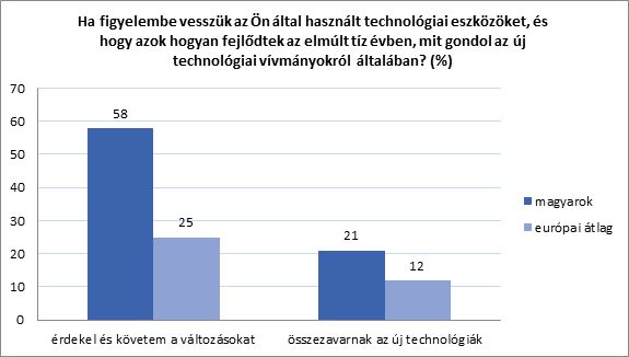A magyarok információ éhsége a témában szintén jócskán meghaladja az európai átlagot: a megkérdezettek mindössze 2 százaléka érzi úgy, hogy leterhelik a folyamatos innovációkról szóló hírek, szemben az európaiak 13 százalékával.