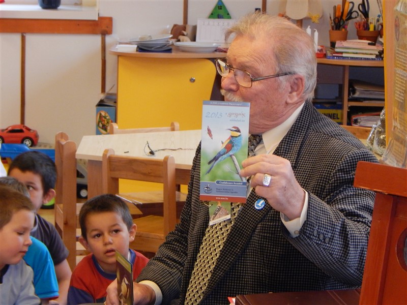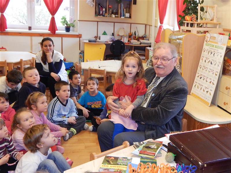 Meizl Ferenc, a petőfiszállási általános iskola egykori igazgatója előadást tartott a madarakról a gyerekeknek az óvodában.