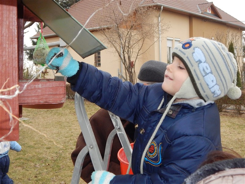 Az előadás után búbosbanka madárodú került elhelyezésra az óvoda udvarán. A gyerekek pedig madáreleséget raktak a madáretetőkbe.