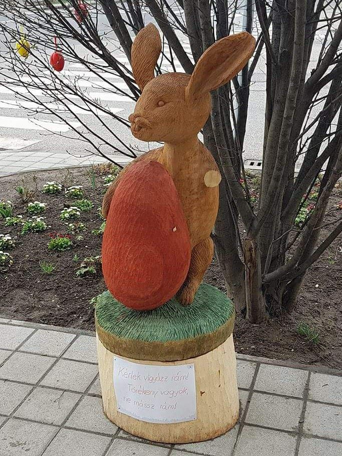 Ezúton kérjük, hogy aki esetleg megtalálja a karját, legyen szíves letenni a Városháza kapujában vagy jelezze azt a Facebook-on.Makkai Mihály fafaragó művész 2 héten át dolgozott érte, hogy elkészülhessen városunk első húsvéti nyuszija!