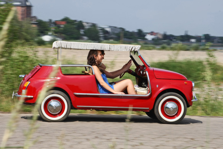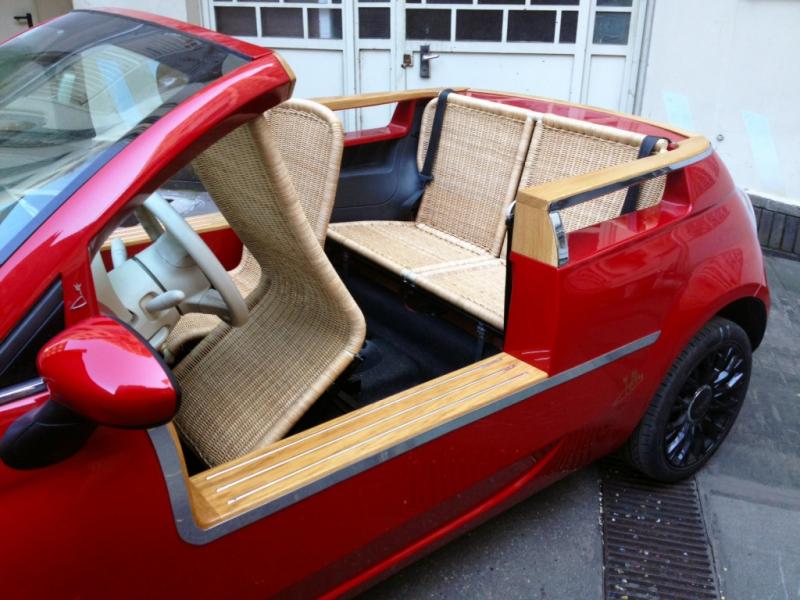 Egy kis műhely, a Jollycar most az eredeti 500 Jolly mintájára a modern 500-asból is elkészítette a strandautó változatot, a recept szinte semmit sem változott bő 60 év alatt. Nincsenek ajtók és tető, a belső teret fával burkolták, az ülések bambuszból készültek, így valamennyire vízálló a kisautó. Ha azonban nagyon rákezd az eső, egy vászonból készített ideiglenes tető kifeszíthető a kabin fölé.