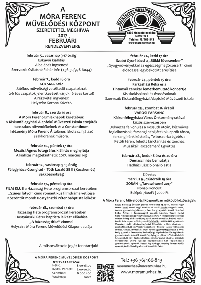 Móra Ferenc Művelődési Központ februári programja