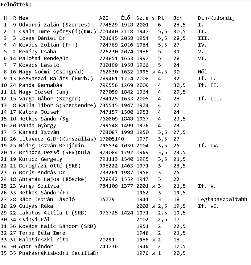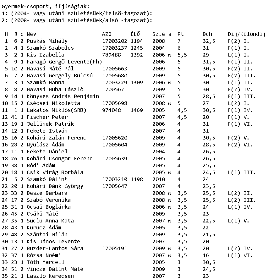 Eredmények részletesen: