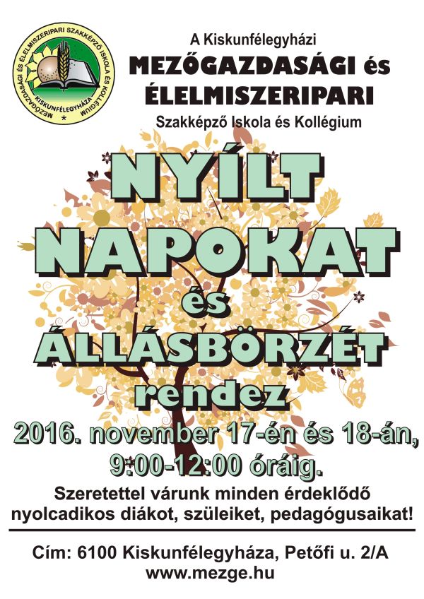 Szeretettel várják az érdeklődőket, szülőket, nyolcadikos diákokat, tanáraikat 2016. november 17-én és 18-án 9 órától az iskolába.