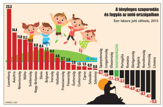 A tényleges szaporodás és fogyás az Európai Unió országaiban