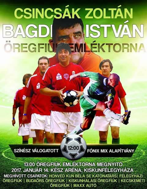 2017. január 14-én a KÉSZ Aréna városi sportcsarnokban Csincsák Zoltán Bagdi István Öregfiúk Foci Emléktorna kerül megrendezésre.