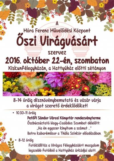 Őszi virágvásárt szervez a Móra Ferenc Művelődési Központ október 22-én, szombaton a Hattyúház előtti sétányon.