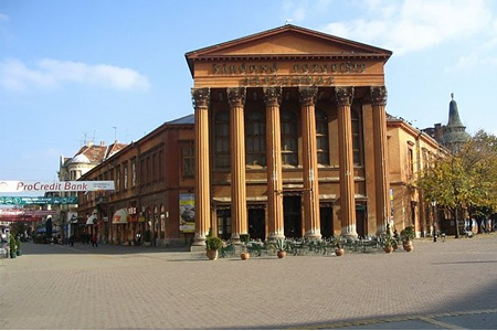 A klasszicista stílusú épület eredetileg szállodának készült, de fennállása óta színházként funkcionál. Magyar-, szerb- és horvát nyelvű előadásokat játszanak. 1915-ben az épület tűzvész martaléka lett, csak a főtérre néző falai maradtak meg, jelenleg átépítés alatt áll, most már sajnos csak az oszlopai maradnak meg a klasszicista épületnek.