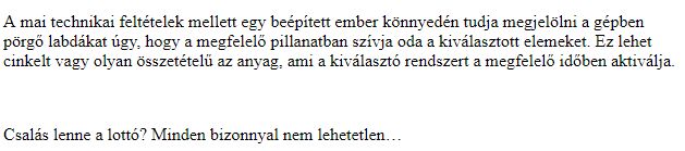 Mindebből tehát az derül ki, hogy teljesen értelmetlen lenne csalni egy játékban, amibe szinte eleve bele van kódolva a nyeretlenség. De persze, ahogy űrben lebegő emberek, illetve szupermodell barátok és barátnők is vannak, úgy az Ötöslottó jackpotja is be fog jönni valakinek, előbb vagy utóbb biztosan.