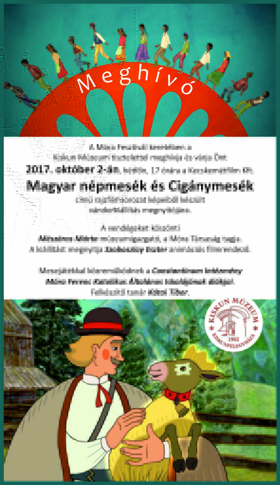 A Kiskun Múzeum tisztelettel meghívja és várja Önt 2017. október 2-án, hétfőn, 17 órára a Kecskemétfilm Kft. Magyar népmesék és Cigánymesék című rajzfilmsorozat képeiből készült vándorkiállítás megnyitójára.