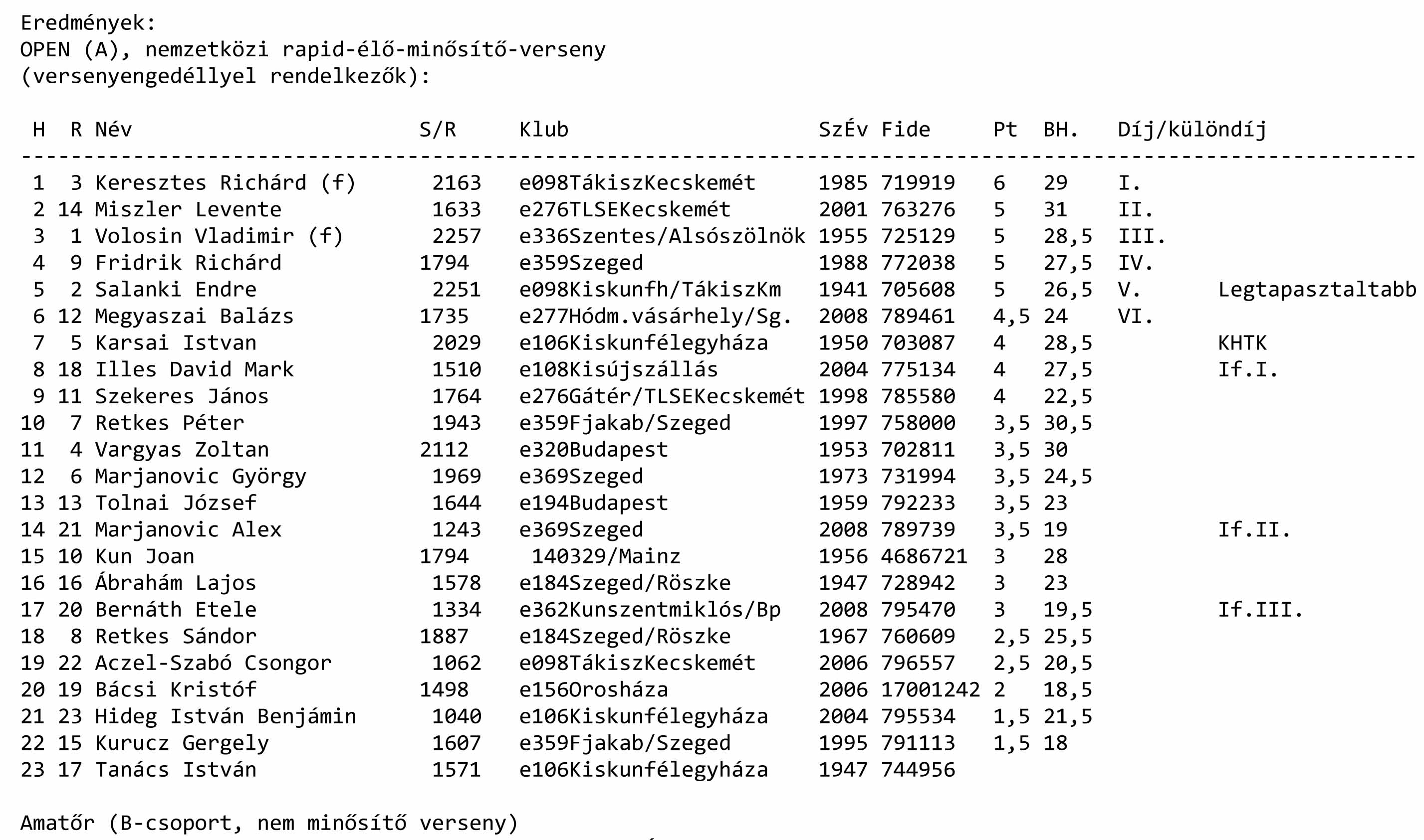 Részletes eredmények::